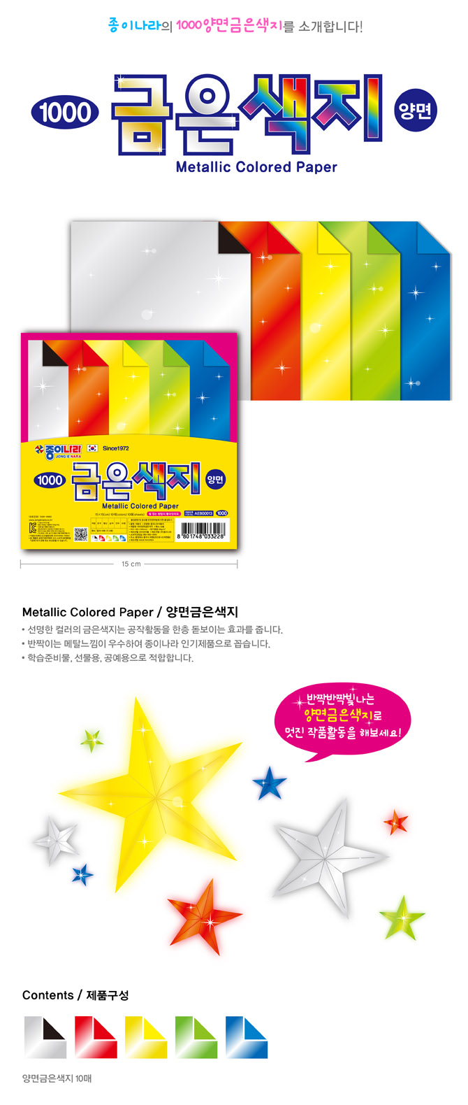 • [종이나라]1000 양면금은색지색종이(10색10매) 150x150mm_50개남음 (+0원)