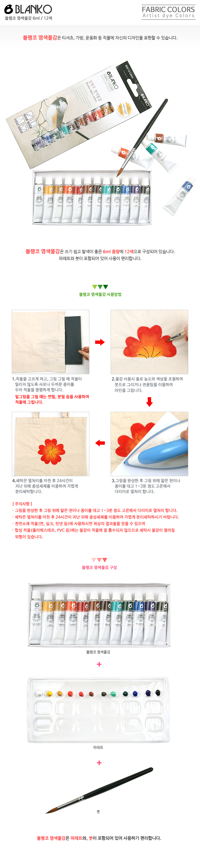 [블랭코] 염색물감세트/패브릭물감/직물물감 6ml 12색 요약정보 및 구매