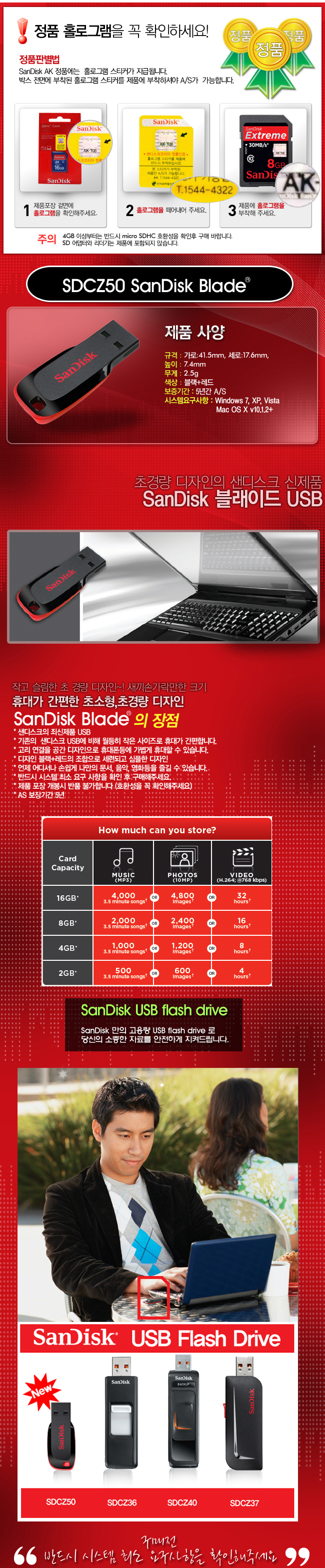[샌디스크] Cruzer Blade Z50 USB/정품인증 64G
