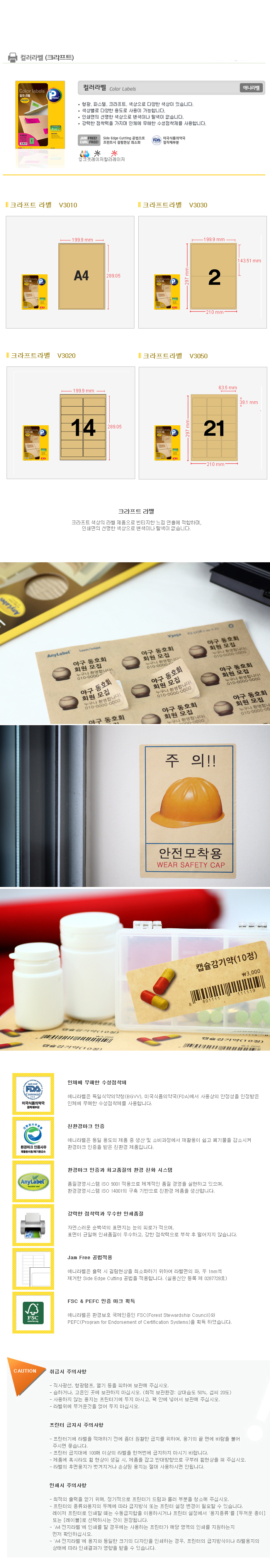 [프린텍] 애니라벨/크라프트라벨지/1칸V3010/2칸V3030/14칸V3020/21칸V3050 (10매) 레이저/잉크젯 요약정보 및 구매