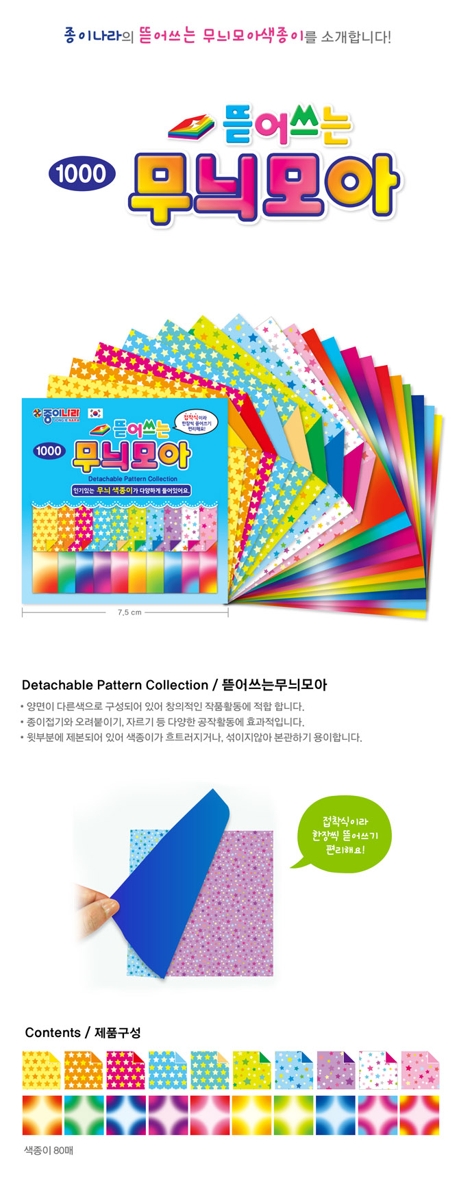 [종이나라]1000 뜯어쓰는무늬모아색종이(30색조80매) 75x75mm_23개남음 요약정보 및 구매