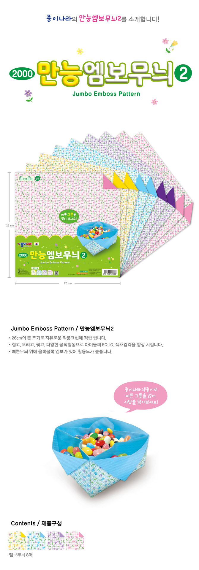 (재고한정) [종이나라] 2000 만능엠보무늬색종이2 (8색조8매) 260x260mm_55개남음 요약정보 및 구매