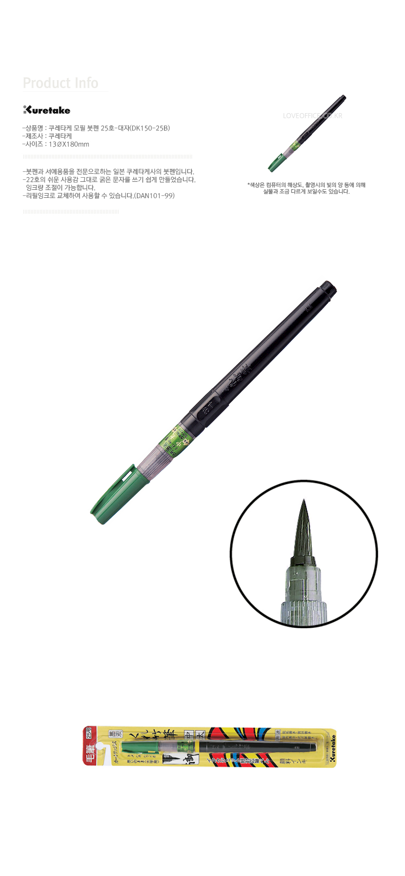[쿠레타케] 쿠레타케 붓펜 25호 캘리그라피 리필가능 요약정보 및 구매