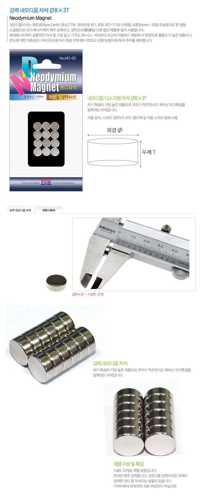 [포비월드] ND자석/네오디움자석/강력자석ND-02 (8mm/12개입) 요약정보 및 구매