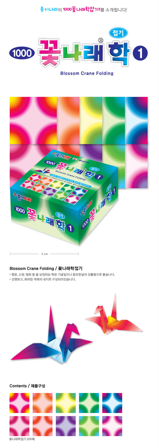 (재고한정) [종이나라] 1000 꽃나래학접기1 (10색조200매)  50x50mm_53개남음
