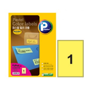[프린텍] 파스텔 칼라라벨지 V3845-100 노랑 1칸 (100매)