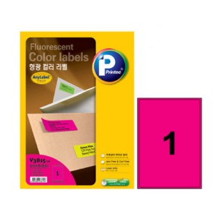 [프린텍] 형광 칼라라벨지 V3815-10 형광빨강 1칸 (10매)