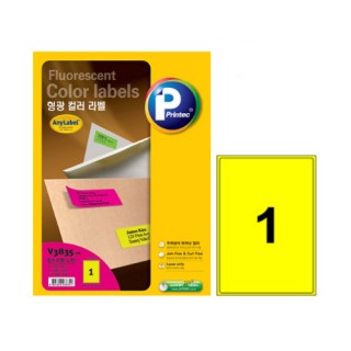 [프린텍] 형광 칼라라벨지 V3835-10 형광노랑 1칸 (10매)