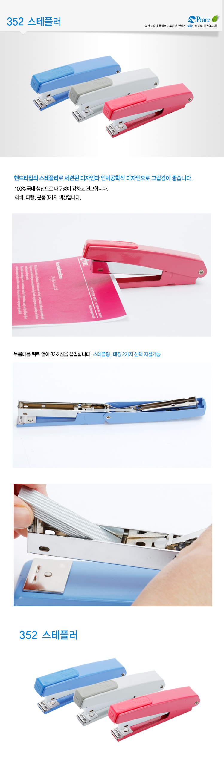 상품 정보상품 상세설명* 권장지철매수 : 20 ~ 25매 * 지철 최대깊이 : 64mm * 상품사이즈 : B21 x L120 x H49mm * 중량 :141g * 사용스테플 : No.33호침 * 특징 : 핸드타입 스테플러로 들고 사용하기 편하다. ** 색상은 랜덤으로 발송 됩니다 ** ![]() 사용후기등록된 사용후기사용후기가 없습니다. 상품문의등록된 상품문의상품문의가 없습니다. 배송정보오후 2시 이전 주문완료건(제작건 제외)에 대해서는 당일발송을 원칙으로 합니다. 단,재고부족 상품은 입고후 출고되며 최대 4~5일 더 소요됩니다.