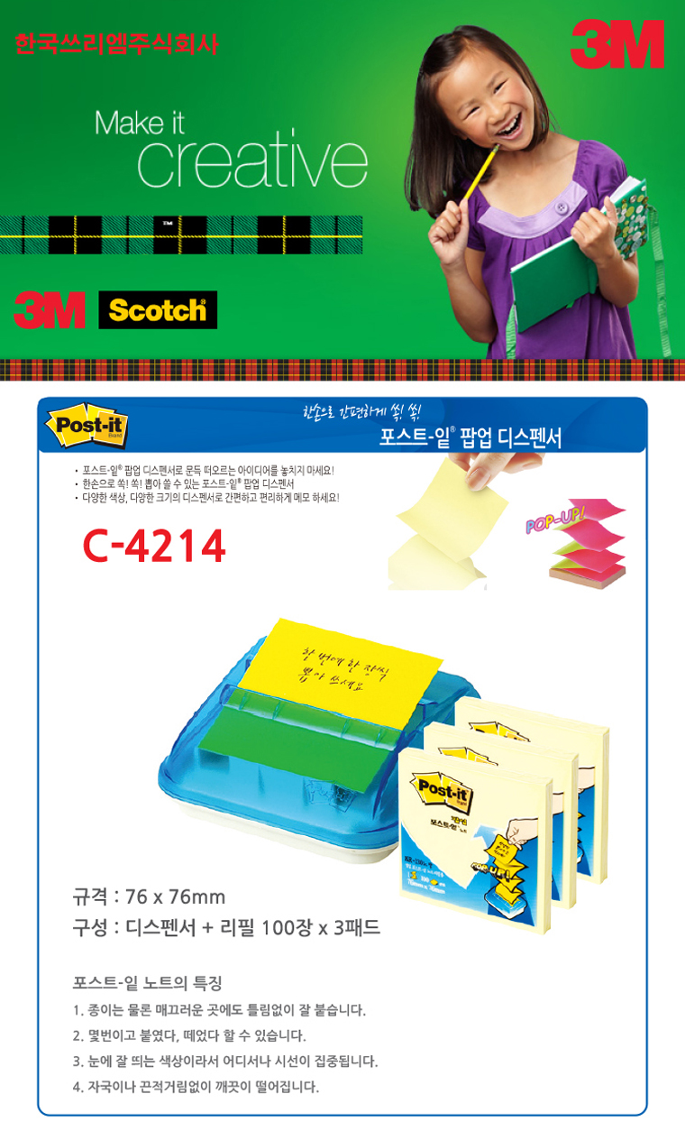 [3M] 팝업디스펜서 포스트잇 C-4214 (76×76)