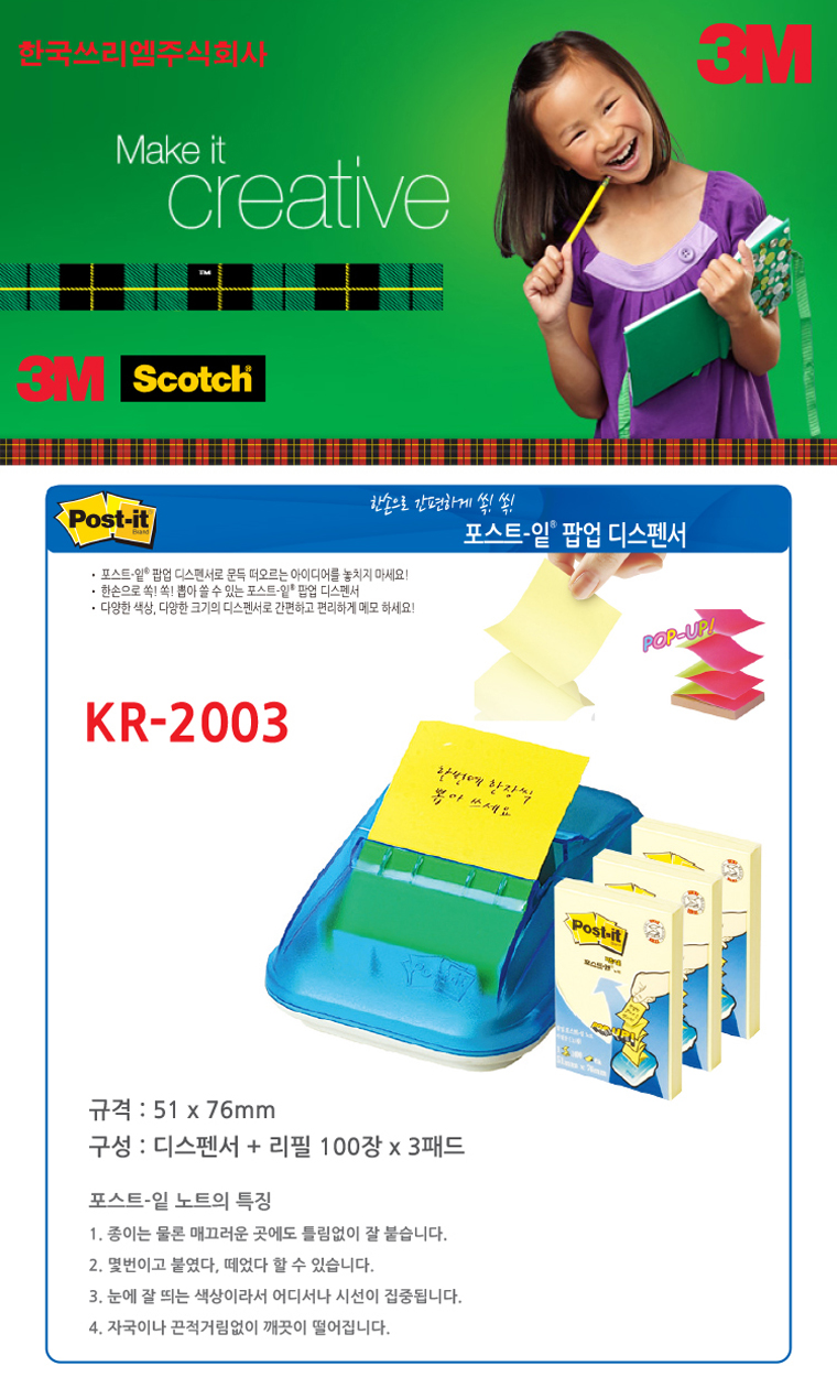 * 기능성이 돋보이는 팝업 디스펜서 하나면 리필 제품을 교체하면서 계속 쓸 수 있어 매우 유용합니다. 전화 통화 중일 때 한손으로 뽑아 메모하기에 더욱 좋습니다. 사용후기등록된 사용후기사용후기가 없습니다. 상품문의등록된 상품문의상품문의가 없습니다. 배송정보오후 2시 이전 주문완료건(제작건 제외)에 대해서는 당일발송을 원칙으로 합니다. 단,재고부족 상품은 입고후 출고되며 최대 4~5일 더 소요됩니다.
